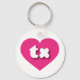 Den här nyckelringen har ett pulserande shock rosa som innehåller den feta, vita, rundade, nedre brev tx i fodral, en lekfull förkortning för Texas, den enda stjärnstaten.