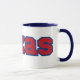 Den här anpassningsbarna kaffet mugg har en design som visningar ord "Texas" i ett Sports World-utskriftsteckensnitt med röd brev blå kontur i den här anpassningsbarna med statlig stolthet stil och tema. Behållaren och fälgen är glaserade i motsvarande färg i 11 eller 15 uns stora mikrovågsugn och säker keramikkonstruktion av diskmaskiner.