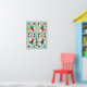 Modern geometrisk utformning av upprepade former och överlappande färg på ljust grönt grått-bakgrund gör att alla väggar ser ut som kvasifuturistiskor.