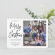 Skicka snyggt glatt hälsning och ett bild med en favorit med ett unikt helgdag-fotokort för anpassningsbar. All text i den här mallen är enkel att anpassa för att inkludera alla formuleringar, t.ex. Glad helg, Säsonhälsningar, nyårscheckar osv. Meddelandet "Vi önskar dig ett God jul och ett Gott nytt år" kan ändras till olika texter i sång eller valfri text. (IMAGE PLACEMENT TIP: Ett enkelt sätt att centrera ett foto exakt som du vill är att flytta det till skörd innan du laddar upp det till Zazzle-webbplatsen.) Den moderna minimalistiska svartvita designen har trendig handskriven stil-skripttypografi och 1 bild efter eget val. Familjen och vännerna kommer att visa elegantens anpassade kort i kärlek.