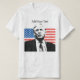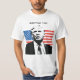 Donald Trump med amerikanska flaggan som en vektor avbildar och den bedrövade looken med beställnings- text att du kan tillfoga din egna ord eller ta bort texten. Rolig politisk valdesign.