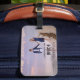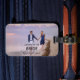 För din smekmånad som nygifta! Lägg till ett av dina favoritfoton från bröllop. Med texten: Bridens språk. Mall för ett namn skrivet med ett stil-skript som hanteras, svartvit färgad. Matchande bagagemärke för brudgummen finns i vår butik.