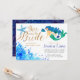 Blåttkorallvattenfärgen under sjöjungfrun för havet sött lite som temat med titelraden "kommer här bruden", kommer vid liv med guld- glitter verkställer. Inbjudningskort för möhippanvykort. Detta ska vänd ditt marin- themed bröllop in i en fantastisk vattenunderland för gäster. Perfekt inbjudan för partyfiranden på stranden eller vid havet.
