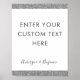 Silver grått grått glitter anpassningsbar-textskylten är perfekt för bröllopsmottagning, Bat mitzvah, Söt 16, Quince, Baby Shower, Möhippa och födelsedagsfest signage.Eller skapa din egen motiveringstext poster för kontoret. Skapa versioner och storlekar för många var du än vill! * * * * * * * * Klicka på ANPASSA YTTERLIGARE om du vill ändra typsnitt, färg och placering * * * * * * * Koordinerar till vår moderna inbjudan till Glitter i Ro och Party i Stationery-samling i Guld.
