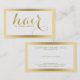 Elegant guld och vit modern, enkel och fetstilfull företagskortsmall för hårstilist. Texthår och enkelt guld gräns över en lätt texturerad vit bakgrund. Struktur är en digital illusion. Förslag på guld-toner för all anpassade på framsidan och svart.