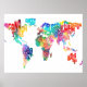 En typografisk text karta i världen i ett stil i stadens vattenfärg. Varje land representeras av namn, som är utformat för att passa in i det geografiskt korrekta området. I stort sett alla land är representerade och förväntar sig att några av de mycket mindre öarna i Stillahavsområdet och Karibien ska bli det.