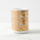 Textil mönster med en levande orange och ett sunt kaffemugg
