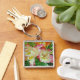 Texturerad Gladiola Fyrkantig Silverfärgad Nyckelring