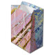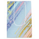 Rosa och blå texturerad bakgrund, målad med stora penseldrag, dekorerad med guld-folie. Grunge Struktur.