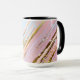 Rosa och blå texturerad bakgrund, målad med stora penseldrag, dekorerad med guld-folie. Grunge Struktur.