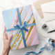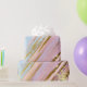 Rosa och blå texturerad bakgrund, målad med stora penseldrag, dekorerad med guld-folie. Grunge Struktur.