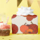Texturerade pumpor med fuzzy spiders som är pappra. Underbara päls-fallfestivaler eller Halloween fest.