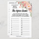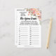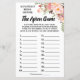 Bridal shower-spelet "The Apron Game" inkluderar engelska och spanska versioner (fram- och baksida). Ändra "Bride to be Name" i mallen för engelska och spanska versionen. För ytterligare anpassning (ändra antal objekt, annan formulering, typsnittsfärg, typsnittsstil) klickar du på "personalisera", scrollar ned och klickar på länken "klicka för att anpassa ytterligare".