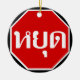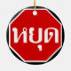 Thai Traffic STOP signerar ⚠ YOOT på thailändska ⚠ Julgransprydnad Keramik
