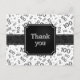 This card is cool way to help you say, "Thank you for coming to my 100th birthday.” There are text templates to easily personalize the words in the center front. This design is a black and white random number pattern with the milestone number 100 repeated in varied sizes and angles over a white background. There is a ticket shape in the center for your text.