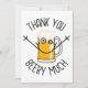 A happy, silly-faced mug of beer, with a text pun that says, "Thank You Beery Much."