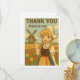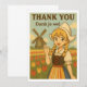 This “Thank You” card features an adorable Dutch anime-style girl in traditional clothing, waving cheerfully in a vibrant tulip field with a classic windmill in the background. Featuring the phrase “Dank je wel,” it’s the perfect greeting card for travel lovers, culture enthusiasts, or anyone who appreciates European charm with a kawaii twist.