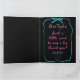 Say "thank you" for any occasion with this decorative black, bright blue and pink-colored folded card with pink stars and a smiley face.