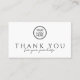 The front features an elegant “Thank you for your purchase” message, making customers feel appreciated right away. The back is fully customizable with your business name, a short thank-you message, phone number, email address, and logo. This allows you to share key contact details while reinforcing your brand.