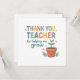 A heartfelt and cheerful design to show appreciation for a wonderful teacher. Featuring colorful, clean typography paired with a cute plant illustration, this design symbolizes growth, care, and guidance. Perfect for expressing gratitude at the end of the school year, teacher appreciation week, or any moment you want to say thank you. Its simple and modern style makes it ideal for gifts that feel both personal and meaningful.