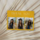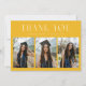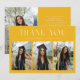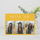 Modern and whimsical graduation announcement photo card featuring 3 photos on the front and 1 on the back. The text at the top says "THANK YOU." Add the graduate's name, information, and message to personalize this card. Yellow color.