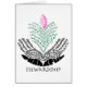 The hands and plant design is made from the words for "thankful" in 41 languages from around the world.