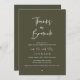 Mark the beginning of your forever with elegance using our contemporary olive sage green theme, wedding elopement celebration invitation card, "Thanks a brunch". Perfect for couples extending their joyous occasion, this invitation exudes sophistication with a hint of playfulness, setting the stage for a memorable event. Adorned with a timeless modern script design theme, it adds a touch of refined charm to your festivities. Crafted by TeeshaDerrick, this invitation promises to beautifully capture your love story.