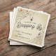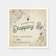 Spooky Halloween party napkin design features blood-spattered spider webs at the corners, with hanging spider and the words "Thanks for Dropping By." Customize with a message and name beneath.