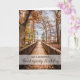 Originalfotografering med fallscener i skogen med fallande löv gör ett vackert Thanksgiving födelsedagskort.