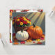 Ett kort för söt med Thanksgiving på baksidan som kan anpassas. Täcket har en söt som illustrerar en vit och en orange pumpor, färgstark Morsa och Höst löv.