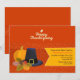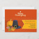 En glad inbjudan till Thanksgiving Middag i säsong. Orangens bakgrund har en pumpa, en Pilgrims hatt och höst löv med akorns. Gulten, sidbanderollen innehåller din party-information. <br/>() Kortet är enkelt att anpassa med text, teckensnitt, teckensnitt, färg, pappra formalternativ och val av sex pappra typer.<br/>() Inte exakt vad du är tittar för? Alla våra produkter kan vara designad anpassningsbar för att uppfylla dina behov utan kostnad för extra.<br/>() Kontakta oss helt enkelt på askpixieprints@aol.com.<br/>() Samordna tillgängliga produkter: Fråga oss bara!