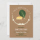 En inbjudan till Thanksgiving med en leende biet av kornbröd och en grönt i lycklig som båda omges av svarta öga ärter. ord är i vitt och grönt och bakgrunden är brun. Hela texten är anpassade.
