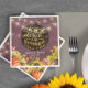 Thanksgiving Dinner Party Pappersservett Templates - Elegant "Eat Drink and Be Thankful" Faux Gold Foil Script, Autumn Maple Lövs, Pumpkins, Sunsun and String Ljus.