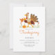 Celebrate the warmth and joy of Thanksgiving with our charming invitation card, perfect for gathering family and friends around the dinner table. This beautifully designed card features a delightful turkey illustration, surrounded by autumn leaves and pumpkins, capturing the spirit of the season.