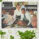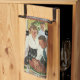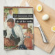 Min hemlighet för perfektens Thanksgiving måltid. Låt någon annan göra allt jobbet. Vintage grafik av en familj i köket som förbereder en Thanksgiving kalkon, som placerar pumpen paj i ugnen och som vet vad den lilla flickan rör upp, kan bli potatis, men det är högst troligt att det är problem. Thanksgiving kökshandduk med våra vackra Acorns- och Oak-Löv - Blue, Brown, Grått på lätt grått-design. Från den lilla akorn kommer den mäktiga eken - bruna pladakorns, sen rasande korniga löv.