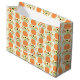 Den här fantastisk-mönstrade presentsäcken har en digital konstbild av en blommigt arrangemang av söt blommor inuti en orange färgad pumpkin vas. Bukettens mittpunkt är en vacker solrosa med stor gult med stora löv av grönt blek. Båda sidor av solrosen är ett urval av andra blommor, inklusive rött rudbeckia, blek persikofärgad färgad Zinnias och söt orange och gult, färgad Gaillardia. Alla blommor stöds av sina gröntar och löv. Det petala färg är designat för att matcha fallets färg.