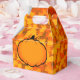 Tecknad stil pumpar teckning. Thanksgivingens dekoration med mönster i bakgrunden. Fall inspirerad design. Gift wrap och party decor-idé.
