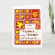 Jag Rejoice och Ge tackar varje dag, Thanksgivingens pappra hälsningskort för en speciell handyman. Grafisk utformning av löv för gult och orange på röda rutor. Design är på en ljusvit bakgrund. Art, bild och versell copyright © Shoaff Ballanger Studios.