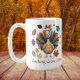 Ta med roligt till köket den här helgdag med Thanksgivingen Kocka i Mugg, med en glad kalkon i en kock omgiven av färglöst höst löv. I personlig med året är detta festliga mugg perfekt för familj och vänner som kärlek kan laga mat tillsammans i Thanksgiving. En tankfull och lekfull gåva till helgdag- eller köksbesättningen, idealisk för att sippa kaffe, te eller kakao under förberedelserna av festen.