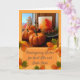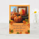 Thanksgiving Önskemål för ett pappert hälsningskort för moster och morbror. Lägg till moster och mormormorbror namn i kortets omslag. Kortbilden innehåller ett foto av ett stillastående liv med miniatyrpumpor, ett fönster med falllandskap, höstljus löv, bär och spridda löv. Anpassa meddelandet som du vill innan du checkar ut. Art, bild och versell copyright © Shoaff Ballanger Studios, 2022.