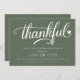 Fira Thanksgiving med dina nära och kära med denna snyggt och elegant inbjudan. Inbjudan innehåller ett vitt skript med kalligrafteckensnitt som säger "tacksamt" med en hjärtuppsättning på en bakgrund för grönten. Perfekten till inbjudan till dina gäster till en minnesvärd kväll av mat, roligt och stipendium.
