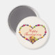 En magnet med min ursprungliga utformning av en hjärtform av frukt, grönsaker och en kornuskopi med texten "Happy thanksgiving".