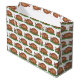 En presentväska har en originalbild av en kalkon på en platter. Perfekt för Thanksgiving eller julklapp ge! Matchning av presenterade märkre, förpackning av pappra, band och tillgängliga vävnader.