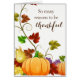 Kortet med söt höst höst löv och en pumpskördsutskrift med Thanksgiving hälsning inuti. Anpassa det här kortet eller köp som det är.