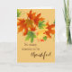 Ett hälsningskort som visas med en höst löv utskrift på söt hösten med Thanksgiving hälsning inuti. Anpassa det här kortet eller köp som det är.