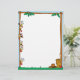 Den här lustiga Thanksgivingen har en yxa och ett skärblock i nedre hörnet av högerna och flera kalkoner som går ut från den lämnat sidan gräns.