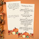 Bakgrund till Cream-färgaden som dekorerats med orange, blommor och pumpor. Anpassa och lägg till menyn Thanksgiving längst fram. Tillbaka: Det finns utrymme för dig att lägga till ett tacksamt meddelande till din gäst. Och ett avsnitt där gästerna kan sin tacksamhet.
