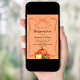 En atomisk tangerinbakgrund för färgaden. Dekorerad med pumpor och en handdragen båge. Anpassa och lägg till information om party.