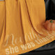 Trots det var hon tacksam. En modern orange kastar filt med text som du kan anpassa. Perfekt för snörning under fallfestligheter
