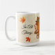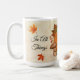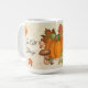 Anpassa den här unika Thanksgivingen "Ett av ett slag" Pumpkin Mugg! Den har en vacker Orange Pumpkin som är omgiven av Höst löv i Orangens och Gröntens skuggor med Orange Berries och Brown Mushroom och den Christian Quote.. "I All Sak Ge Tack!"! Det här är en originalkonstform av konstnären Kerry Miller.
